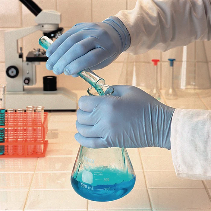 nach EN 374 · Kat. III · AQL: 1,5 · Material: Nitril · strukturierte Fingerspitzen · puderfrei · mit Rollrand · hervorragende Chemikalien- und Mechanikeigenschaften · ausgezeichneter Tragekomfort und Beweglichkeit · leicht und kühl · kein Wachs · kein Silikon · kein Weichmacher · verbesserte Griffsicherheit · für Spezialanwendungen geeignet · antistatisch Box à 100 St. · Anwendungen: Laboranalysen, chemische Industrie, Notdienste, Elektronik, Handhabung komplexer Teile