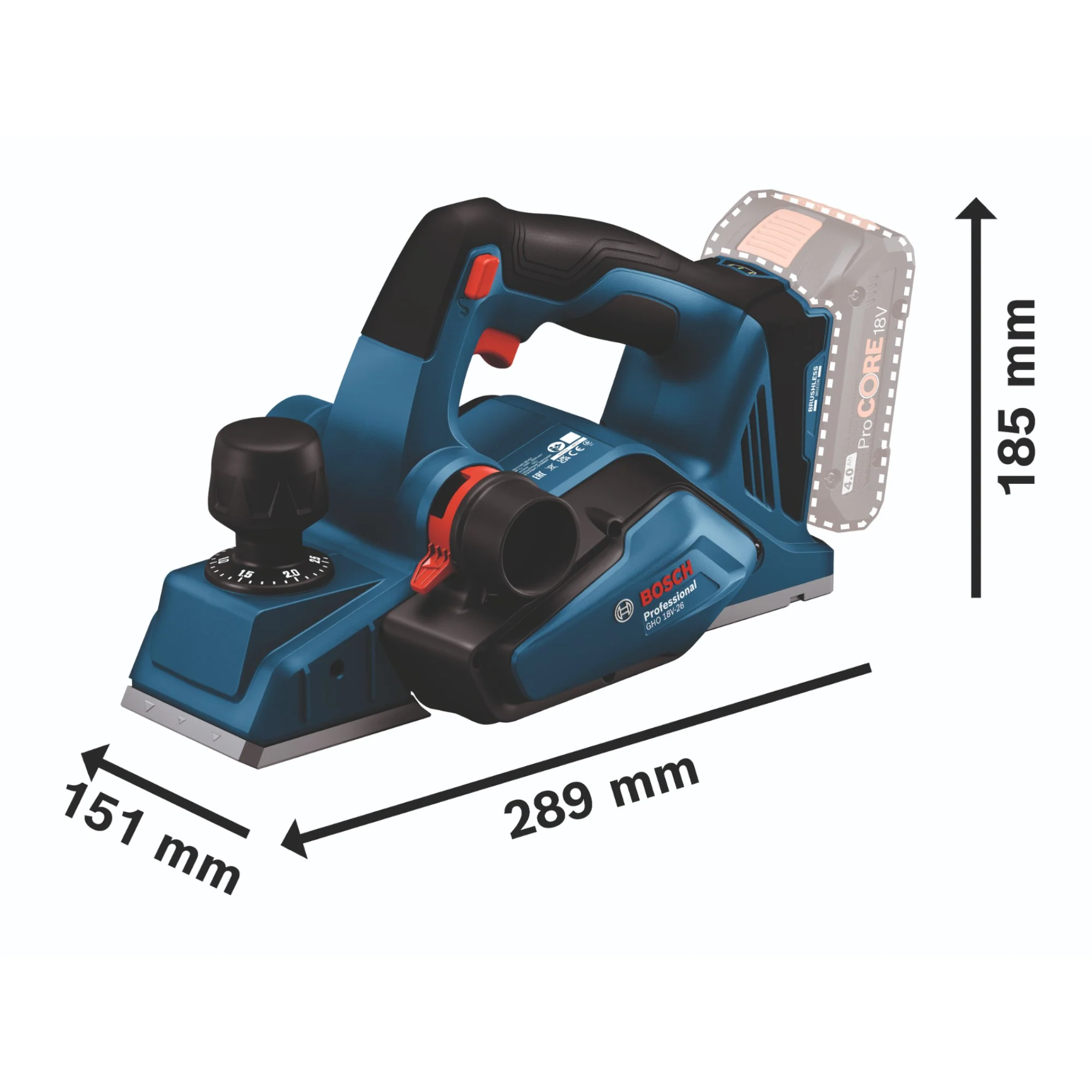 - 1x Bosch GHO 18V-26 Professional Akku Hobel