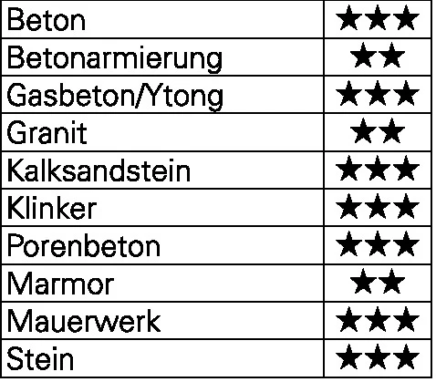 SDS-plus Zweischneider · der patentierte Hartmetall Bohrkopf sorgt für hohe Standzeiten und für besonders schnellen Bohrfortschritt - selbst in Armierung · zertifiziert durch die Prüfgemeinschaft Mauerbohrer (PGM) nach Anforderungen des Deutschen Instituts für Bautechnik (DIBt) Anwendungsbereiche: Beton, Betonarmierung, Mauerwerk, Naturstein, Kalksandstein, Fliesen, Marmor, Klinker