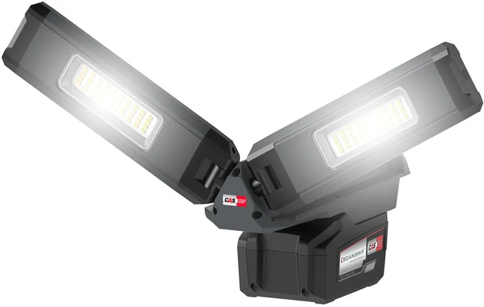 extrem leistungsstarke Arbeitsleuchte · extrem hohen Lichtleistung von bis zu 2500 Lumen · Lichtleistung in 2 Stufen einstellbar, 50 % und 100 % Lieferung ohne Akku/Connector